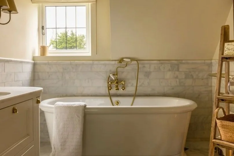 The master bedroom includes a beautifully appointed en suite with a walk in shower and roll top bath, creating a relaxing space to unwind. A second bedroom also benefits from its own en-suite with a walk in shower. The large family bathroom features a generous bath, walk-in shower, and large sink, offering plenty of space for guests sharing the room. Each bathroom has been thoughtfully designed with beautiful tiles, high quality fittings, and underfloor heating to ensure warmth and comfort throughout your stay.